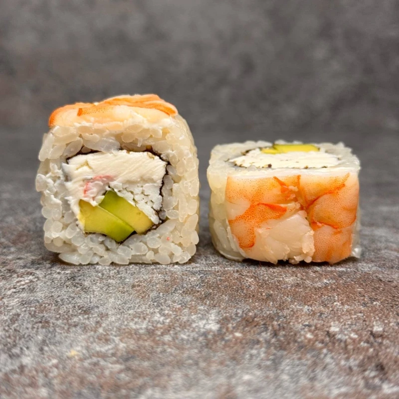 Ролл с креветкой авокадо и крабом