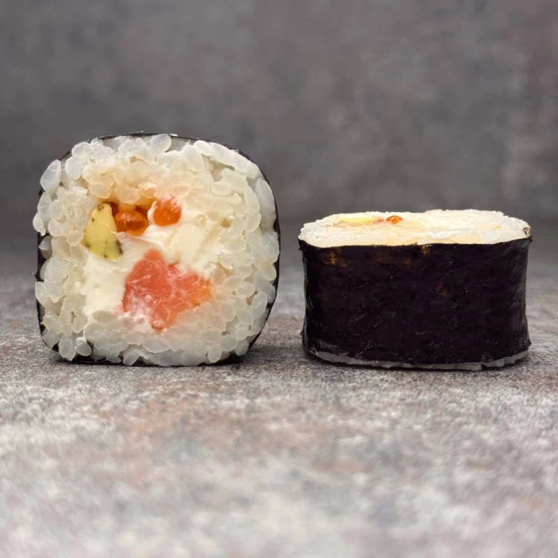 ролл с копченым лососем и красной икрой